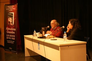 Ya, en noviembre de 2014 Almudena había venido a Jarcha coincidiendo con la celebración de nuestros 40 años de existencia. Entonces presentó “Las Tres Bodas de Manolita”, tercera entrega de los “Episodios de una Guerra Interminable”. Cuando algunos asistentes le preguntaron por las referencias a Vicálvaro en algunos de sus libros nos reveló que rendía con ello un cariñoso recuerdo a una mujer (su tata) que había trabajado en la casa de sus padres cuando ella era niña. Esto es algo que Almudena hacía con mucha frecuencia, poniendo nombres de amigos o conocidos a personajes de sus novelas, o citando lugares o calles dónde viven o residen personas queridas. Vicálvaro aparece citado en “Inés y la Alegría” cuando en la primera parte de la novela habla de Comprendes, un minero asturiano que recala en Vicálvaro antes de cambiarse a otros domicilios. También cita Almudena a Vicálvaro en “Los besos en el pan”, donde sitúa la residencia de una de los muchos personajes que aparecen en el libro.
