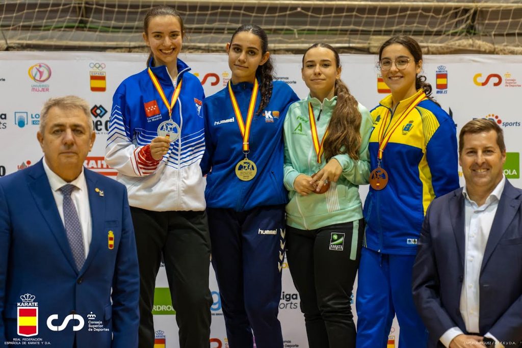Como prueba del enorme nivel de la categoría, de nuevo la acompañaron en el pódium tres antiguas campeonas de España. En concreto, se alzó con el subcampeonato Irene Moreno Camarena, la excepcional competidora toledana que es en la actualidad primera del ranking nacional, y que el pasado año fue tercera tras ser vencida por María en los cuartos de final. Mientras, en el tercer escalón se subieron la sevillana Lola Matos Peral, que en 2022 fue segunda, y la madrileña Eva Cardeña Díaz que repitió puesto.