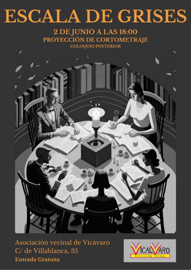 Unas 50 personas de todas las edades asistieron el pasado viernes 2 de junio al pase del cortometraje «Escala de grises», de Caóticas Producciones, en el local de la AVV. Ambientado entre el otoño de 1947 y el invierno de 1948, en plena posguerra española, cuenta la historia de una serie de artistas que intentan crear mientras sortean la censura que había impuesto la dictadura franquista. De entre los personajes, destaca el de Carmen, una madre soltera que trata de mantener viva su pasión por la creación literaria mientras esquiva a los censores y cuida de su hijo pequeño.