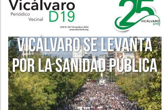 La gran manifestación en defensa de la sanidad pública de Madrid del pasado noviembre ocupa la portada del número 207 del periódico vecinal Vicálvaro Distrito 19, una publicación que el pasado junio cumplió 25 años.…
