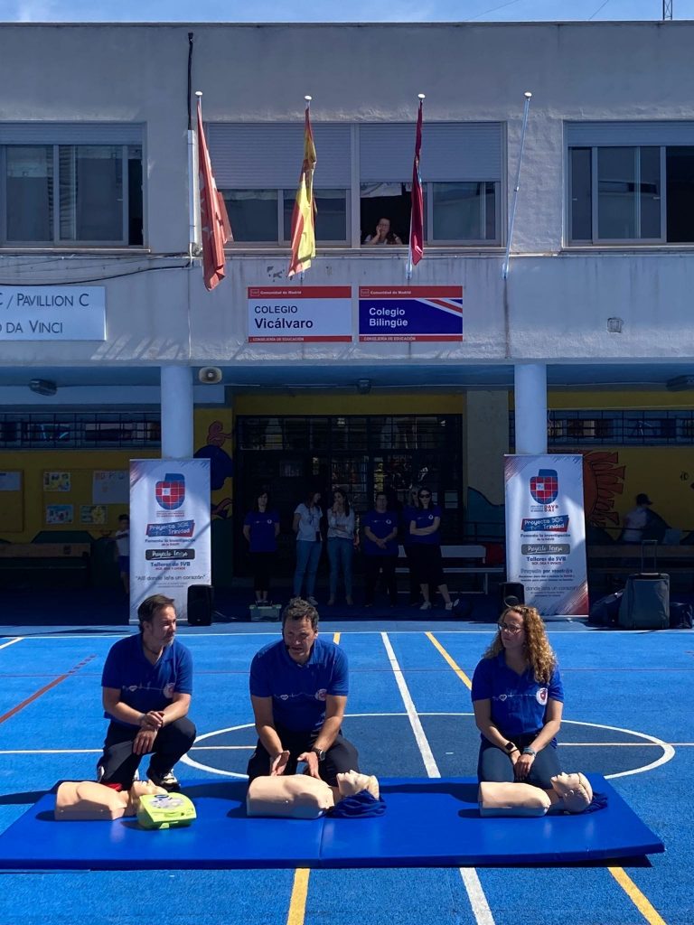 8 personas voluntarias y la familia del CEIP Vicalvaro, la combinación perfecta para cubrir 415 niños y niñas en un taller de RCP simultáneo con nuestro Proyecto Teresa.