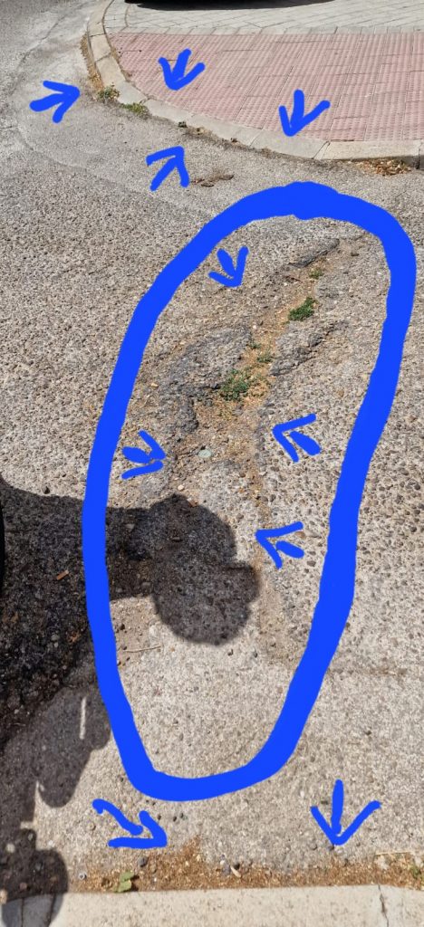 Prueba de ello son estas fotografías que nos ha remitido una vecina, Mónica, para denunciar esta situación. Corresponden a la zona de calle Vivero de la Pilarica/Plaza de Ceres/Jardín de la Duquesa, pero muchas otras vías del Distrito (no las principales) están en idéntica situación: baldosas levantadas (y perdidas), escalones, baches, faroles, papeleras, agujeros… En definitiva, un sinfín de obstáculos que impide desplazarse a las personas con movilidad reducida.